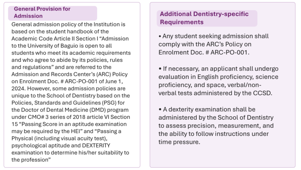 The University of Baguio educates individuals to be empowered professionals in a global community. The School of Dentistry is committed in providing excellent dental education to produce competitive and socially responsible dentists.